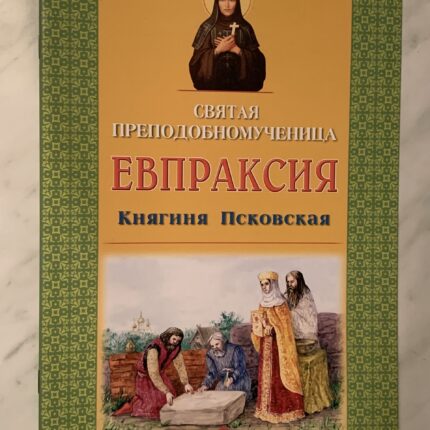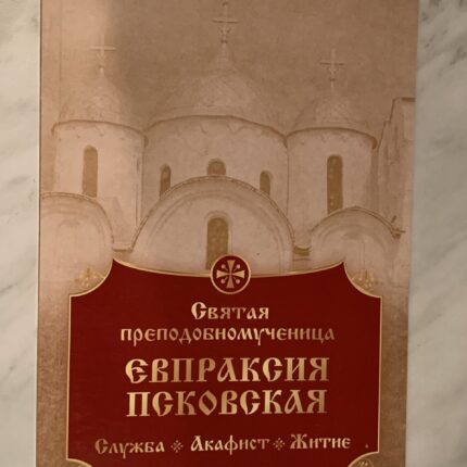 ОПИСАНИЕ: Издание содержит службу и акафист святой подвижнице -преподобномученице Евпраксии Псковской, основавшей Иоанновский девичий монастырь, набранные церковнославянским шрифтом на церковнославянском языке, а также ее житие на русском языке, набранное гражданским шрифтом. Полноцветная обложка и цветные вклейки с иконами преподобной, дореволюционными фотографиями основанной ею обители, а также современные фотографии собора Рождества Иоанна Предтечи, в котором она погребена, выполнены на плотной глянцевой бумаге.